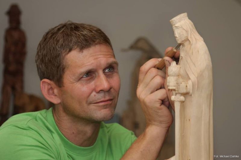 Poczułem w pewnym momencie życia potrzebę tworzenia. Może dlatego, że nie lubię nudy, zainteresowałem się rzeźbą. Od kolegi dostałem kawałek lipy, trzy dłuta i tak się to zaczęło. Oczywiście początki były trudne. Miałem problem ze zdobyciem odpowiednio wysuszonego drewna i profesjonalnych, dobrze przygotowanych dłut. Rzeźbiłem przy pomocy nożyków do tapet i przez to moje dłonie przez niemal rok były poranione. Chociaż pierwsze rzeźby wychodziły bardzo skromne, to z każdym dniem rzeźbiarstwo wciągało mnie coraz mocniej.