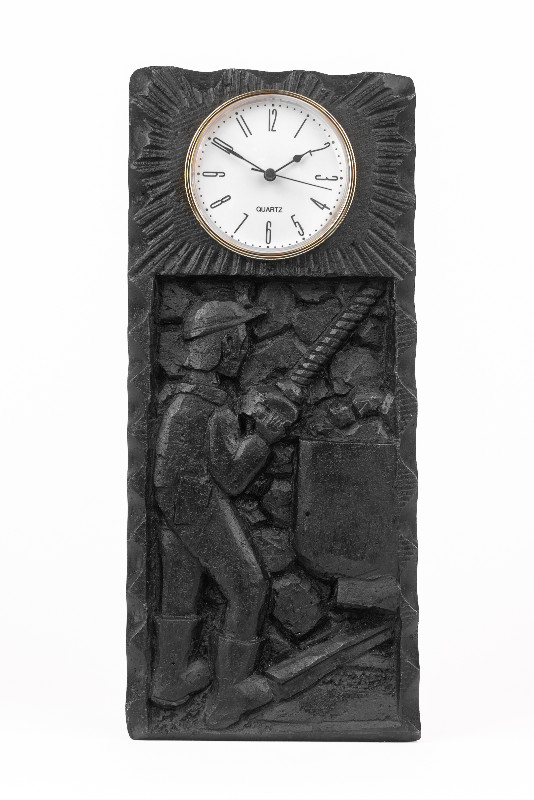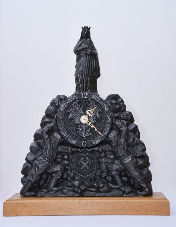 Zegar ze św. Barbarą, grafit, wys. 50 cm, wyk. Bogdan Krauze, własność MOK-GHM w Jastrzębiu-Zdroju, fot. Piotr Łuczak