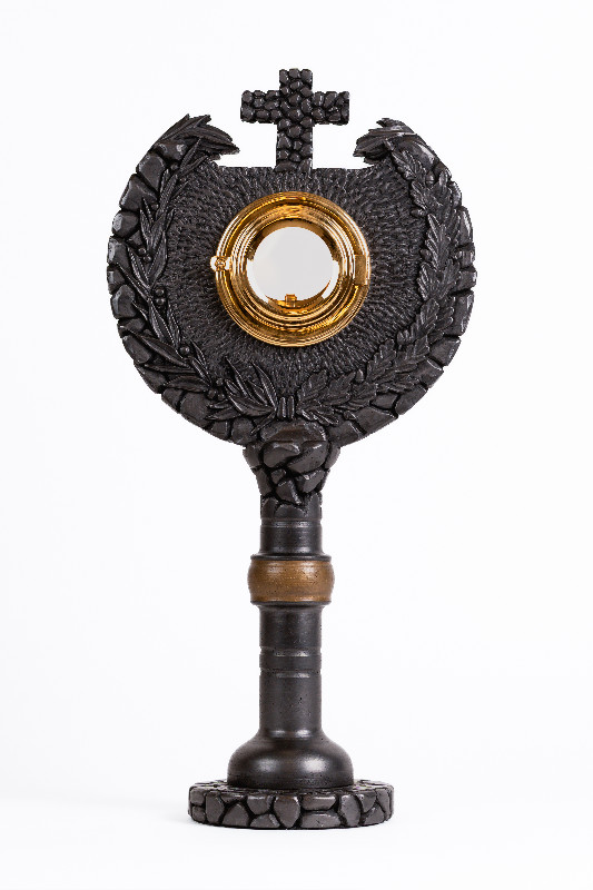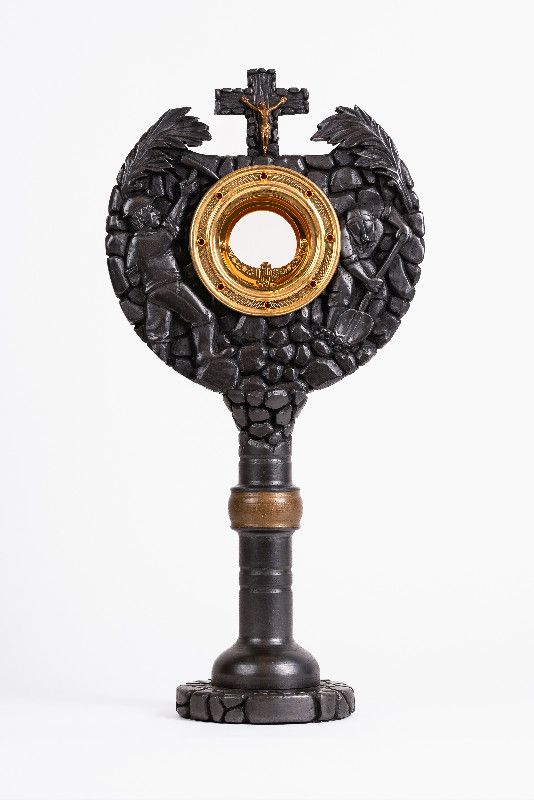 Monstrancja (awers), grafit, wys. 53 cm, wyk. Marian Grzegoszczyk, własność parafii pw. św. Barbary i św. Józefa w Jastrzębiu-Zdroju, fot. Maciej Kanik